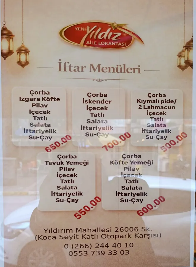 Balıkesir'in tanınmış Lokantacılarından olan ve aynı zamanda yıllardır Oda Başkanlığı yapan Hasan YILDIZ kendisine ait Yeni Yıldız Lokantasında Ramazan dolayısı ile Balıkesirlilere özel indirimler yaptı. Balıkesir'de en leziz yemekleri müşterisine sunan nezih işletmelerden biri olan Yeni Yıldız Lokantasında herkese ve her keseye uygun Ramazan menüsü hazırlandı.