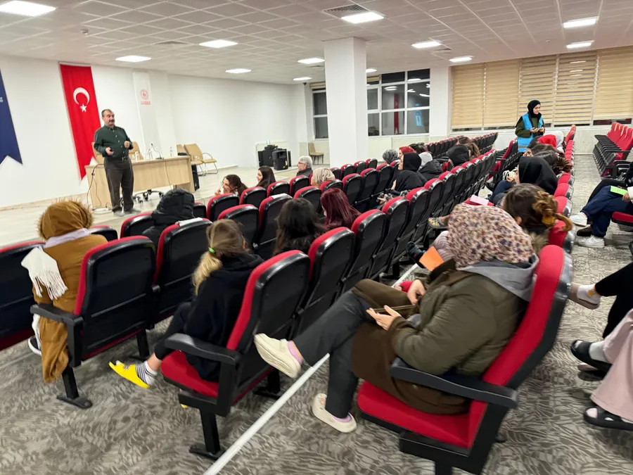 Yurdun Konferans Salonunda 18 Aralık 2025 Perşembe akşamı öğrencilerin ilgiyle izlediği "Kariyer Planlaması ve Proje Geliştirme Teknikleri" konulu sunumu dinleyenler arasında KYK Kınalı Hasan Kız Yurdu Müdürü Emine Erkan ve Yozgat Gençlik ve Spor İl Müdürlüğü Gençlik Hizmetleri Müdürü Ali Sapmaz ile gençlik liderleri de yer aldı.