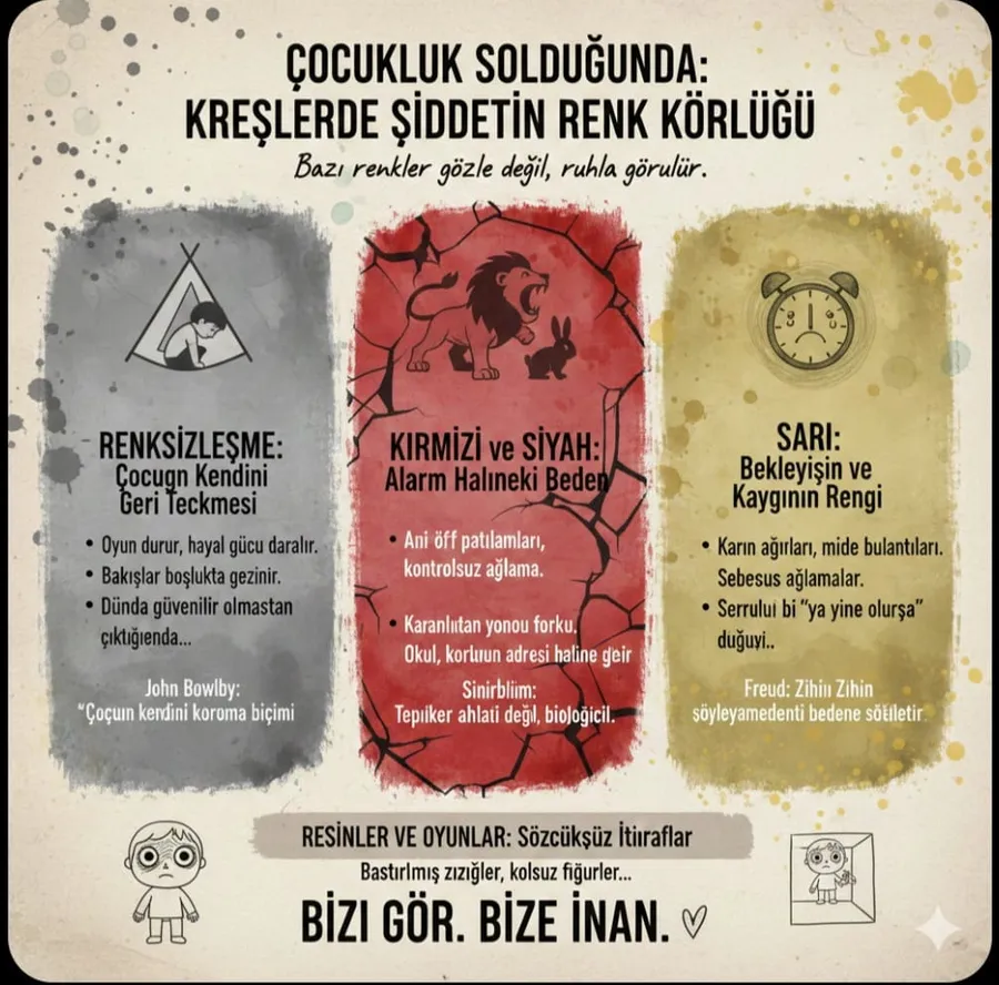 Renkleri geri getirmek; yalnızca kamera koymakla, yönetmelik yazmakla olmaz. Görmek, inanmak ve ciddiye almak gerekir. Çünkü bazen bir çocuğun hayatını kurtaran şey, yetişkinlerin duyduğu o küçük, titrek fısıltıdır.