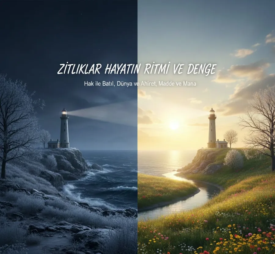 Hayat, bir zıtlıklar var oluşudur. Ve bu zıtlıkların varlığı, bizi mutlak bir iradeye kusursuz bir yaratıcıya yönlendirir. Evren tesadüfen değil, her şeyi bir amaç ve denge üzerine kuran bir Yaratıcıya işaret eder. O halde, karanlık ve aydınlık, hüzün ve sevinç; hepsi, bizi mutlak dengeye çağıran bir ilahi davettir.