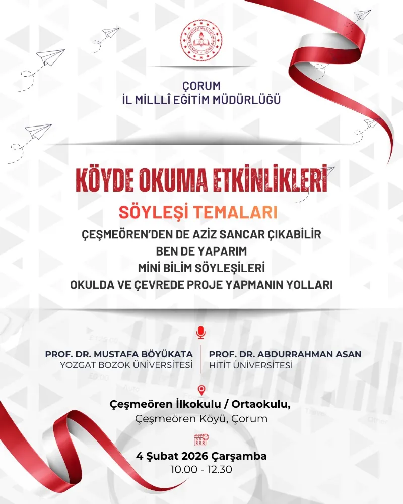 Çorum İl Milli Eğitim Müdürlüğünün daveti üzerine 4 Şubat 2026 Çarşamba günü Çeşmeören İlkokulu / Ortaokulu öğrencileriyle bir araya gelen akademisyenler, çocuklarla kısa kısa söyleşiler yapıp bilgiler paylaştı, meraklarını uyandırdı ve onların sorularına cevap verdiler.