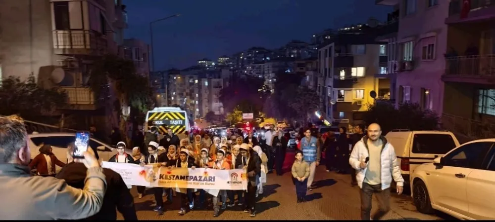 İzmir’de Kestanepazarı Hacı Ahmet Dayhan 7–10 Yaş Kur’an Kursu öğrencileri; öğrenci velileri, Kestanepazarı Kur’an Kursu hocaları, Kestanepazarı Öğrenci Yetiştirme Derneği Yönetim Kurulu Başkanı Cüneyd Dayhan ve Yönetim Kurulu Üyesi Muhiddin Sami Dayhan, Millî Kültür ve Ahlâka Hizmet Vakfı Yönetim Kurulu Başkanı Halil Fatih Boyacı ve Yönetim Kurulu Üyesi İbrahim Özpoyraz, Kestanepazarı Öğrenci Yetiştirme Derneği çalışanları ile vatandaşların katılımıyla; Kestanepazarı Hatay Eğitim Kampüsü’nden Akevler Makbule Durmuş Akkuş Camii’ne tekbir ve salavatlar eşliğinde yürüyerek toplu hâlde gittiler.